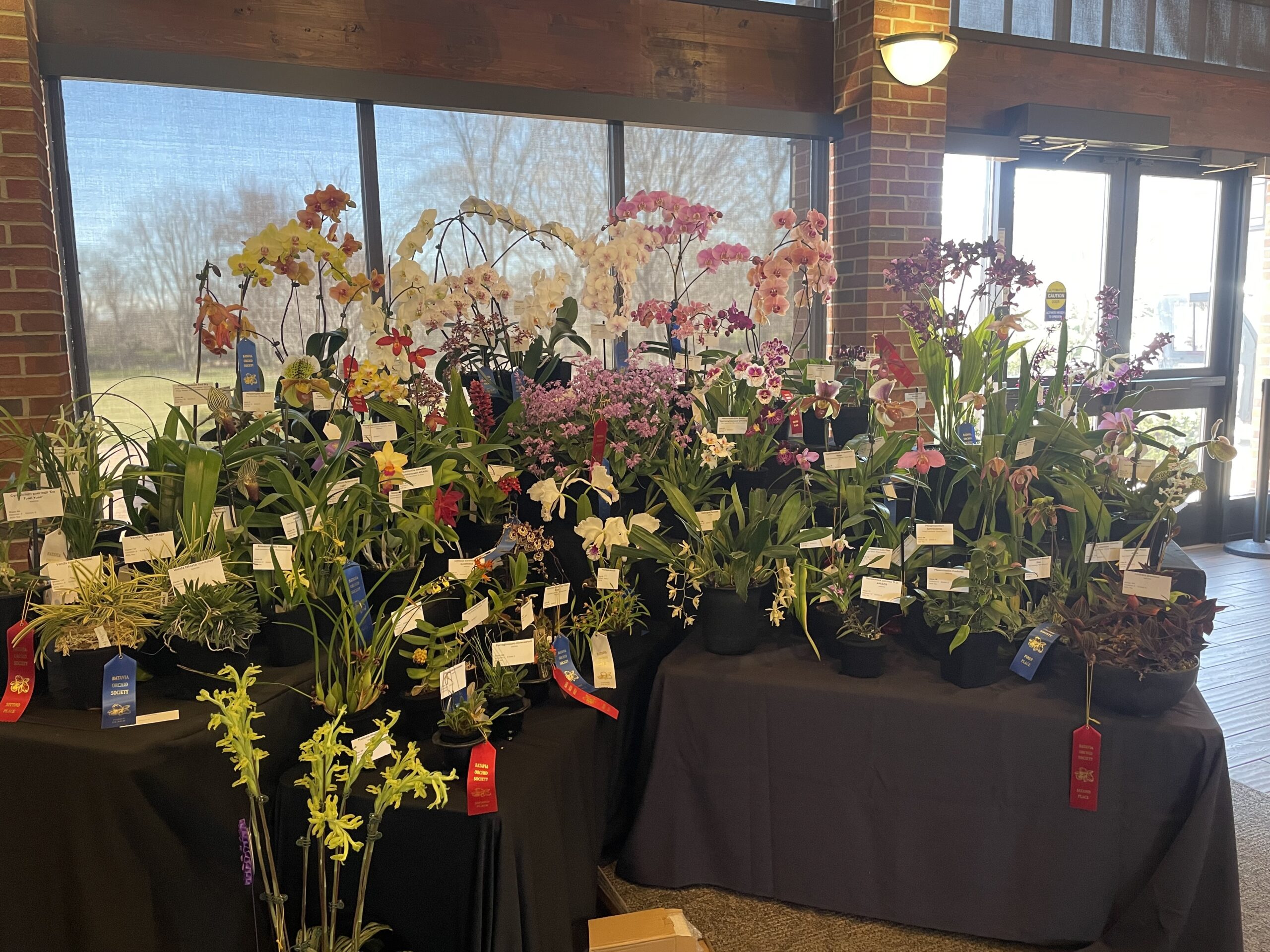 Ask for a docent. Our members are available to take you on a tour of the exhibits and explain the finer points of judging and what makes a good orchid for home growing.